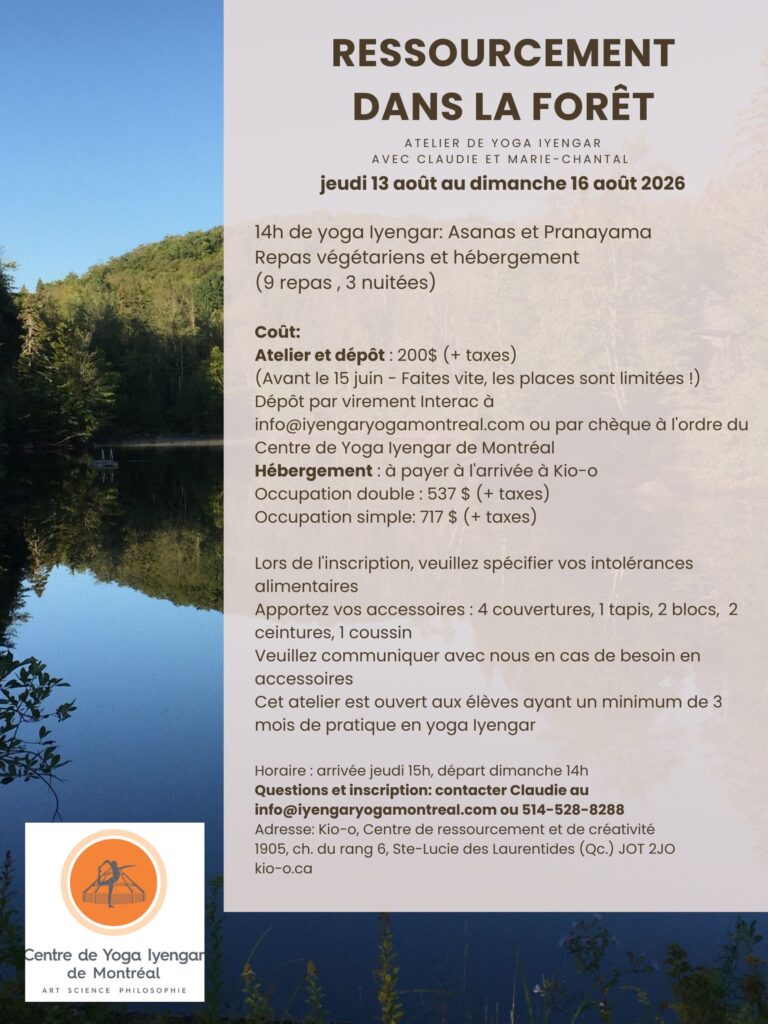À notre tour, avec Ann Kilbertus, nous allons explorer ce qui se trouve au cœur du yoga, principalement dans la tradition de B.K.S. Iyengar. Durant cet atelier, la pratique approfondie d’asanas et de pranayama sera imprégnée des souvenirs et des réflexions reçus de Guruji et laissés en héritage.