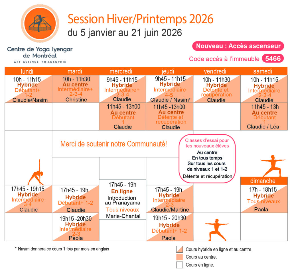 Prendre note que le calendrier des cours en ligne ci-dessous est mis à jour les dimanches, afin d’indiquer les cours et les ateliers disponibles pour les 15 jours suivants.